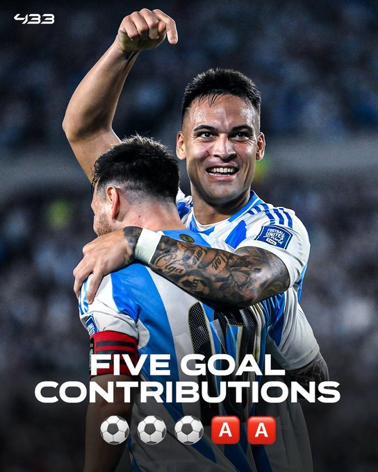 本场比赛后,梅西也以6球登顶南好意思世初赛弓手榜榜首。