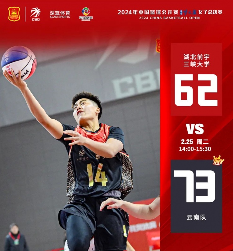 首场比赛由湖北前宇三峡大学对阵云南队,上半场开局,两队打得相对胶著,比分紧咬至6平。随后湖北前宇三峡大学加强驻防,8号漆采篮下强势,反击中4号卫香羽、5号陆婷接连篮下得分,湖北前宇三峡大学16-9向上。过期的云南队,抑制通过外线寻找契机,14号娜汉三分射中,匡助球队逐渐追平并反超比分。首节适度,云南队22-20向上湖北前宇三峡大学。次节,两队热切火力不减,湖北前宇三峡大学5号陆婷依旧手感火热,云南队14号娜汉也不甘沉寂。半场适度,云南队39-37向上湖北前宇三峡大学。下半场,跟着膂力的下落,两队热切得胜率齐通盘缩短,湖北前宇三峡大学堕入顷刻的得分荒,反不雅云南队在14号娜汉、6号罗菲的携带下,屡次反击快攻到手,最终云南队73-62投诚湖北前宇三峡大学。
