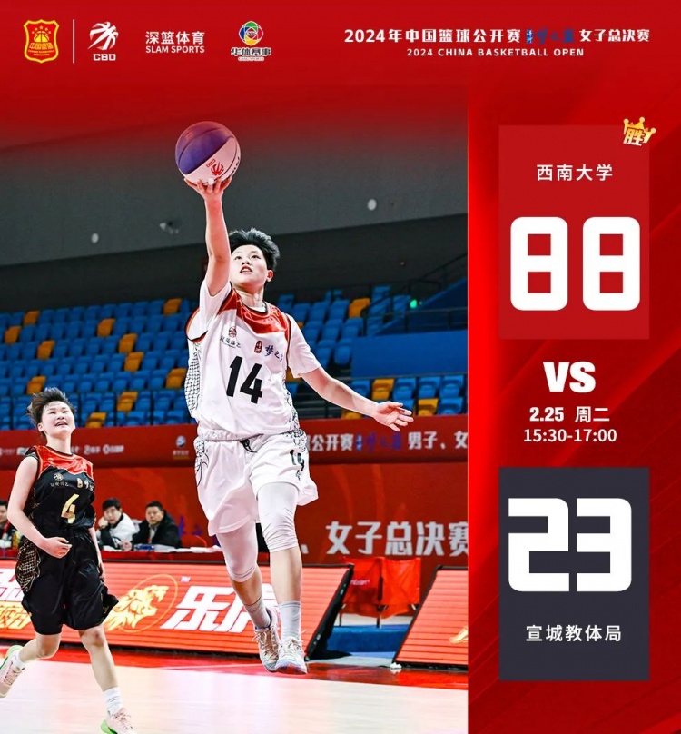 第二场由西南大学对阵宣城教体局,两队之间也曾存在一定的实力差距。上半场,西南大学开场打出了一波16-0的得分潮,奠定向上上风。宣城教体格局对西南大学的驻防,很难获得有用得离异段。半场适度,西南大学47-15向上宣城教体局。易边再战,西南大学热切依旧进展强势,17号冯艺、7号应茵、10号李汶璐经常入手得分,最终,西南大学88-23投诚宣城教体局。