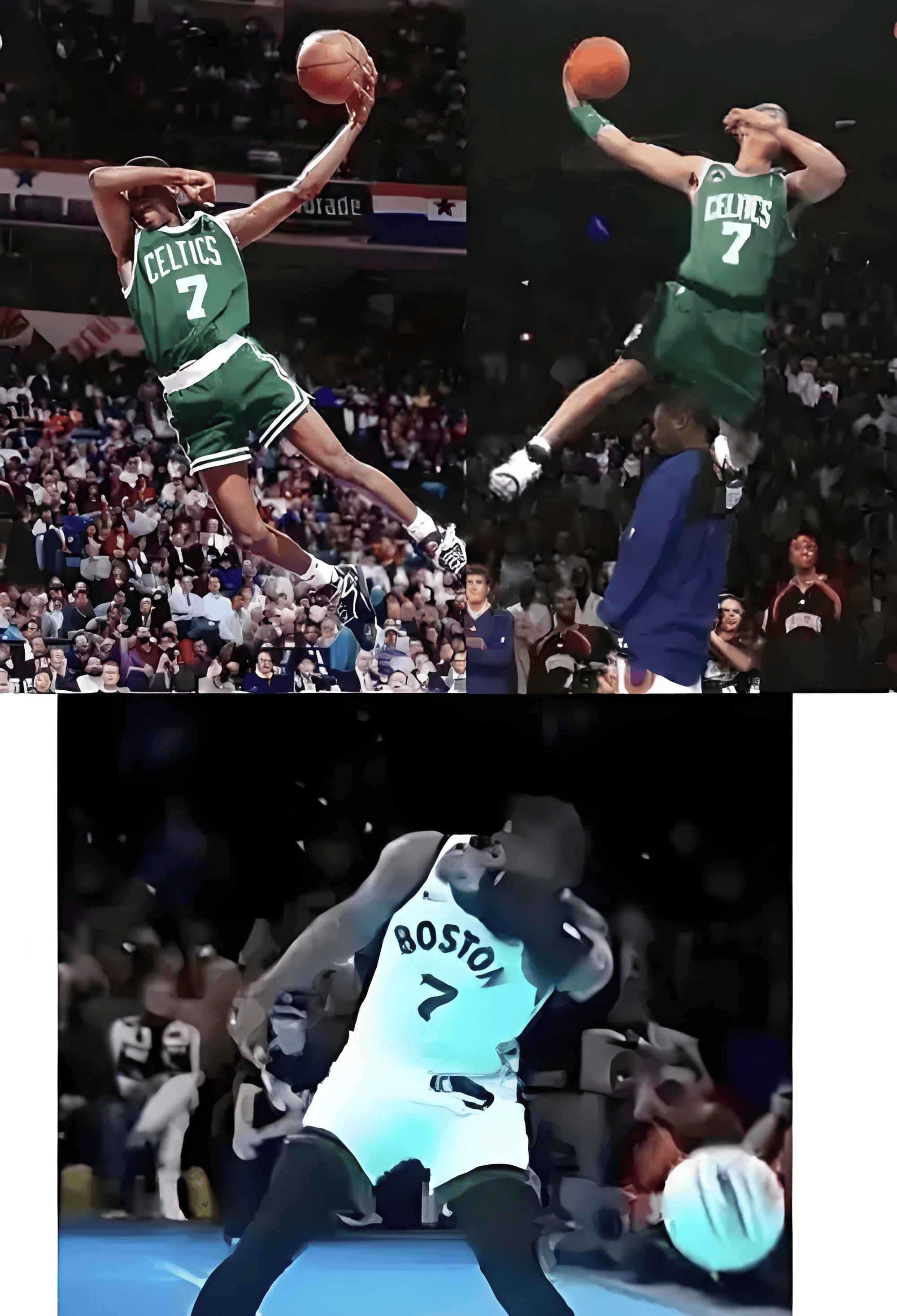 值得一提的是体育录像/图片,日后身穿凯尔特东谈主7号球衣的杰拉德-格林与杰伦-布朗齐在扣篮大赛上效法过迪-布朗的“躲猫猫”扣篮,其中前者还加上了跃东谈主的难度算作。